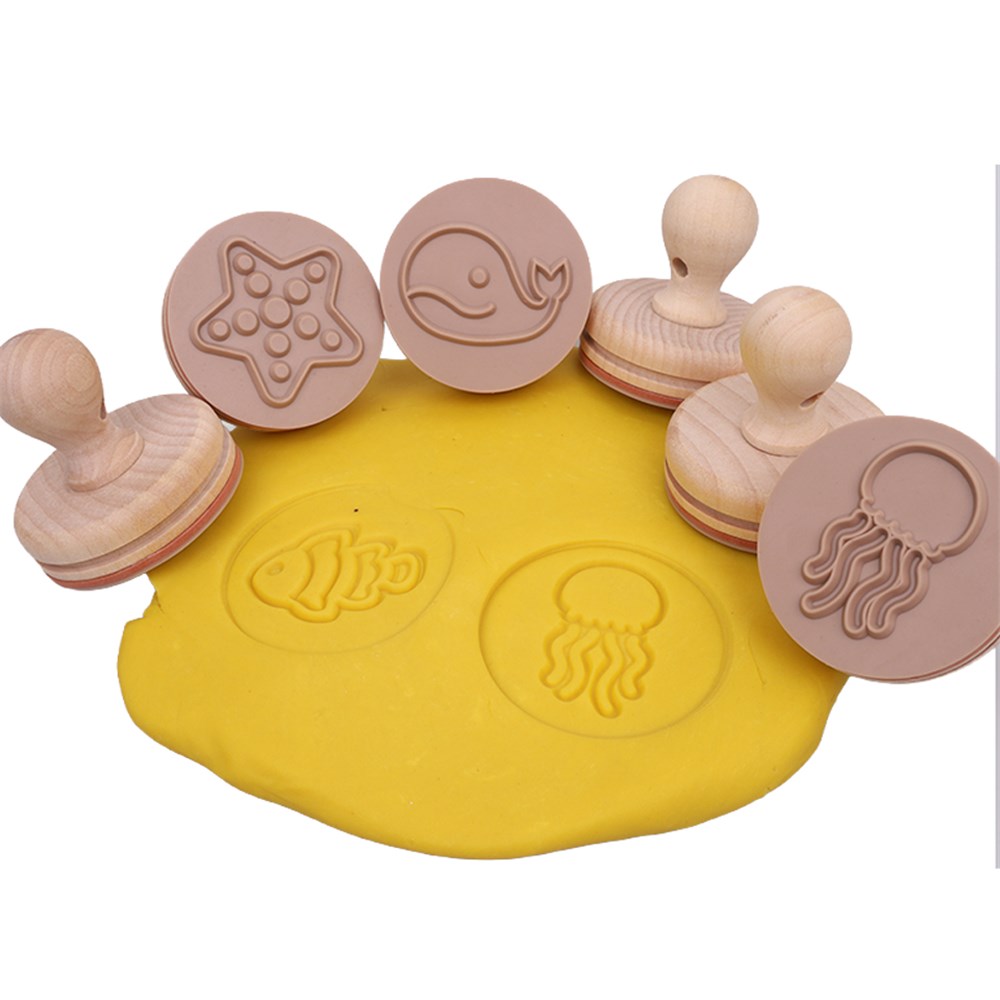 Pack of 6 wooden stamps featuring assorted Sea Animal designs.