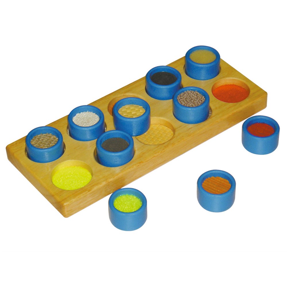 Features 10 assorted textures including rough, smooth, bumpy and more! Match the 10 texture cups with the corresponding textures on the board using sight or touch. Board measures 27.5 x 11cm.