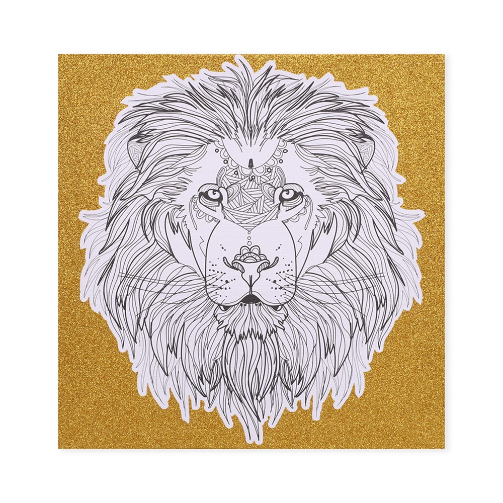Features a printed Lion design plain for you to colour in and decorate, on a gold glitter covered canvas. Canvas measures 29 x 29 x 1.5cm.