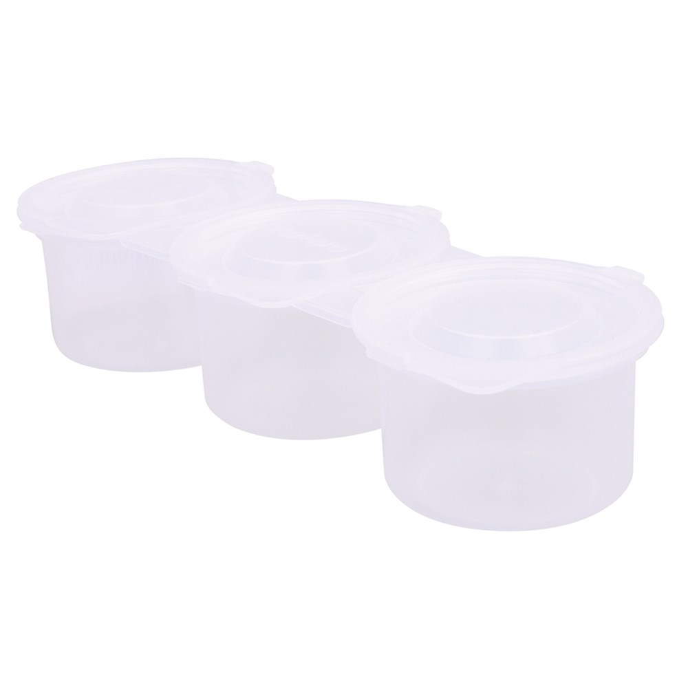 Large plastic pots suitable for holding water, paint and loose craft materials. Can also be used for colour mixing. Features 3 connected empty pots and a sturdy, no-spill lid that keeps paint fresh when not in use.