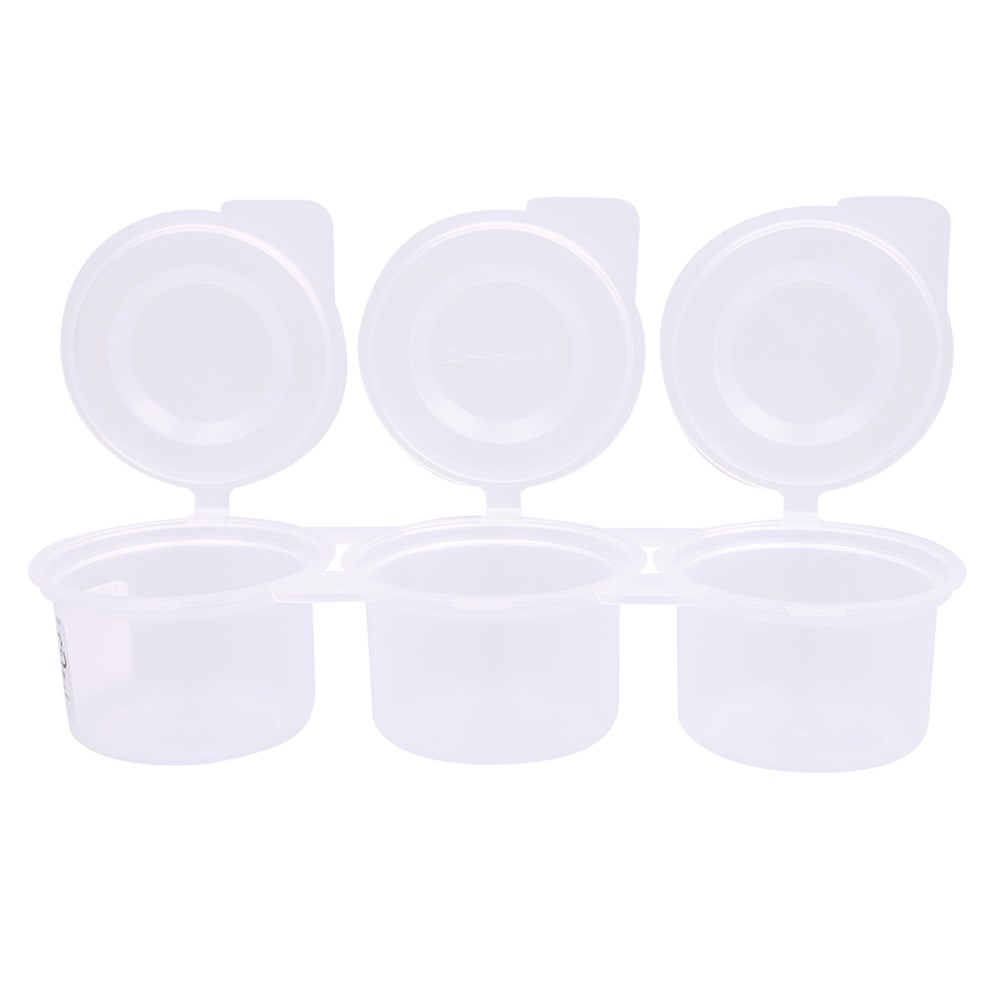 Each tub holds approximately 75ml and measures 6.5 x 7.2 x 4.3cm with the lid closed.