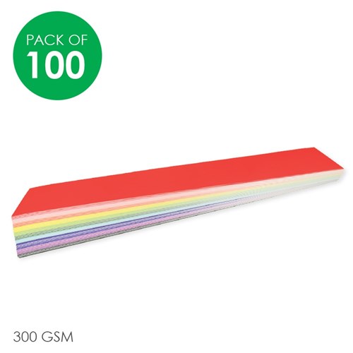 Coloured sentence strips supplied plain for you to create. Double-sided card with gloss effect on one side and matt on the other. Assorted colours. Each strip measures 64 x 10.2cm. 300gsm.
