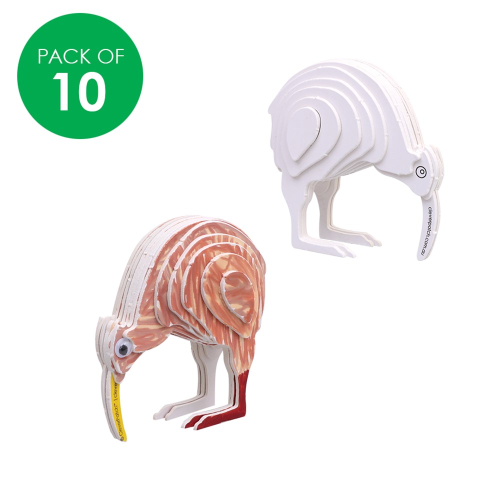 Construct your very own 3D Kiwi with these 3D Cardboard Animal Puzzles! Includes components to create 10 puzzles. Plain for you to create. Supplied flat-packed for easy self-assembly. Assembly guide included.