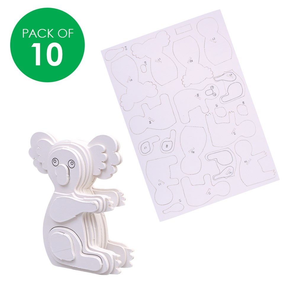 Construct your very own 3D Koala with these 3D Cardboard Animal Puzzles! Includes components to create 10 puzzles. Plain for you to create. Supplied flat-packed for easy self-assembly. Assembly guide included.