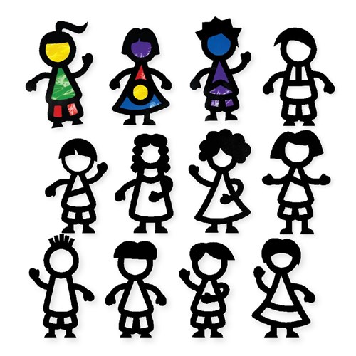 Pre-cut black cardboard frames in 12 assorted people designs.