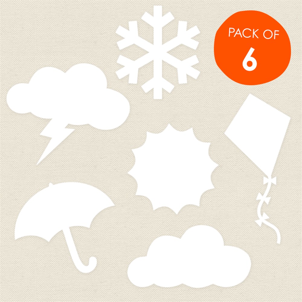 6 designs. White for you to decorate. Sun measures 10 x 10cm. 210gsm board.