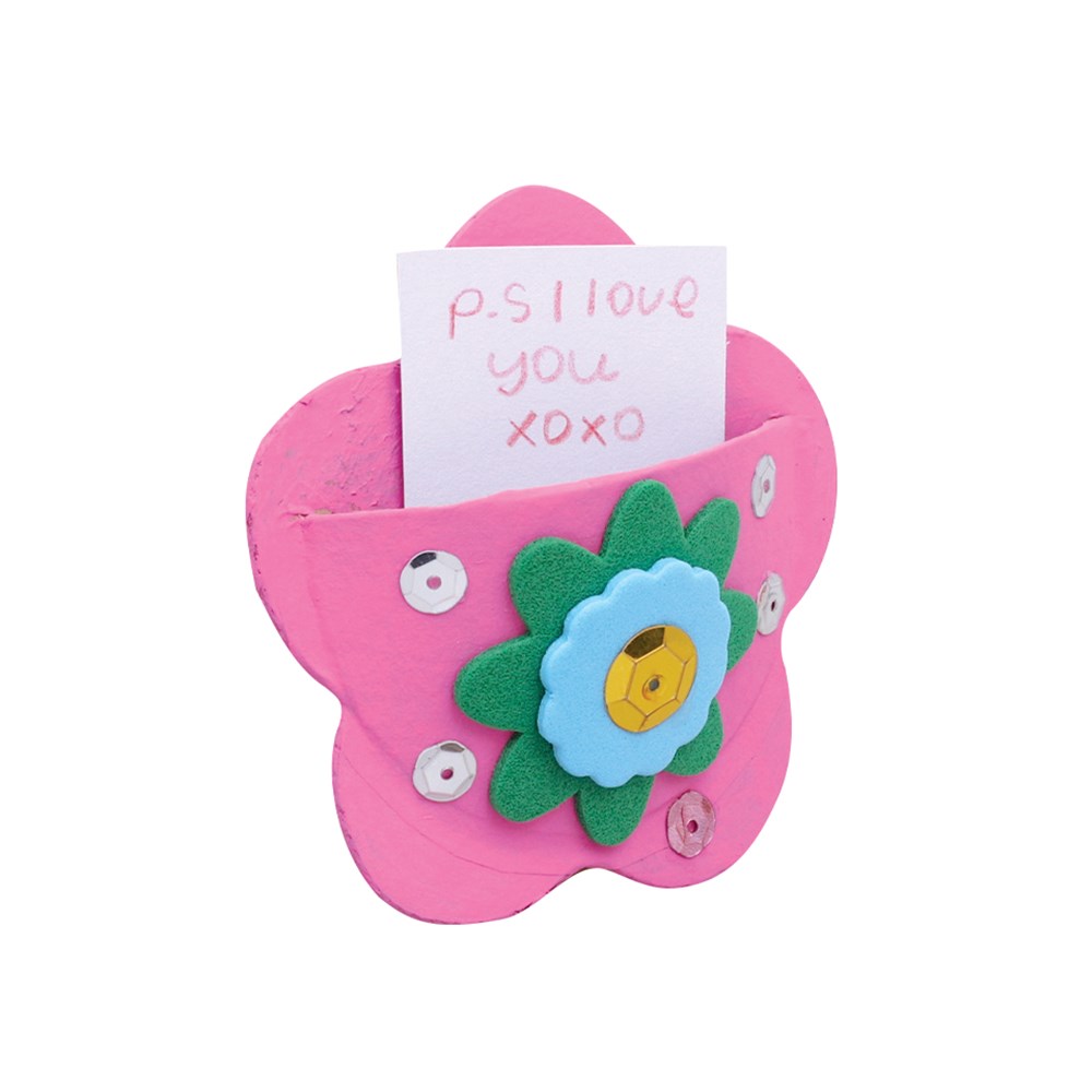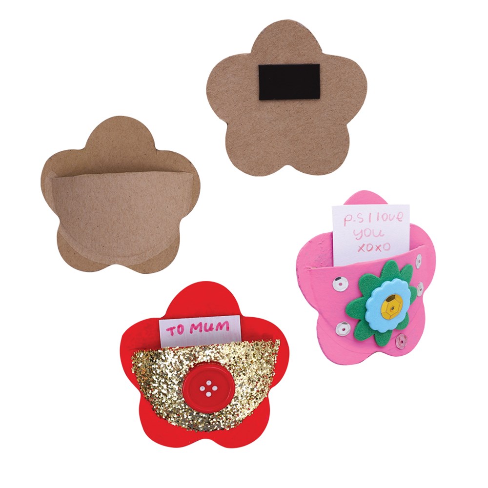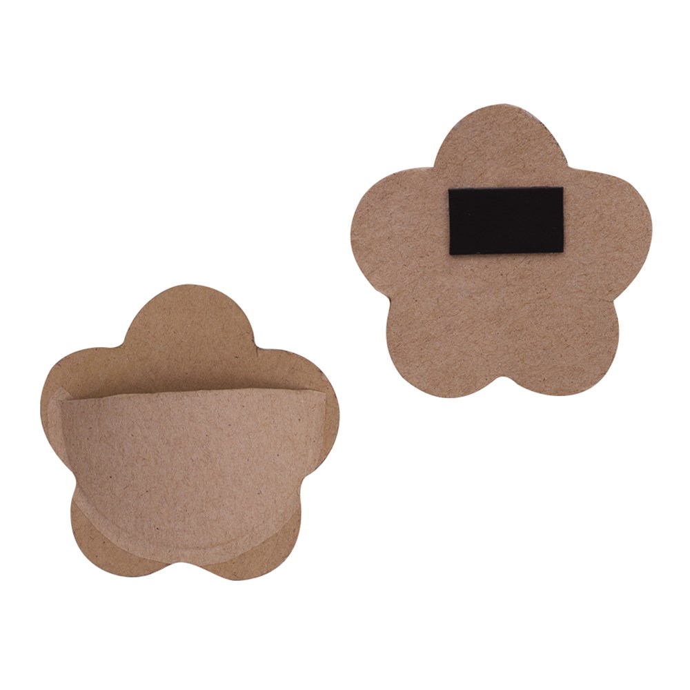 Handmade papier mache flower pocket. Plain for you to create. Includes a magnet on the back and pocket on the front.