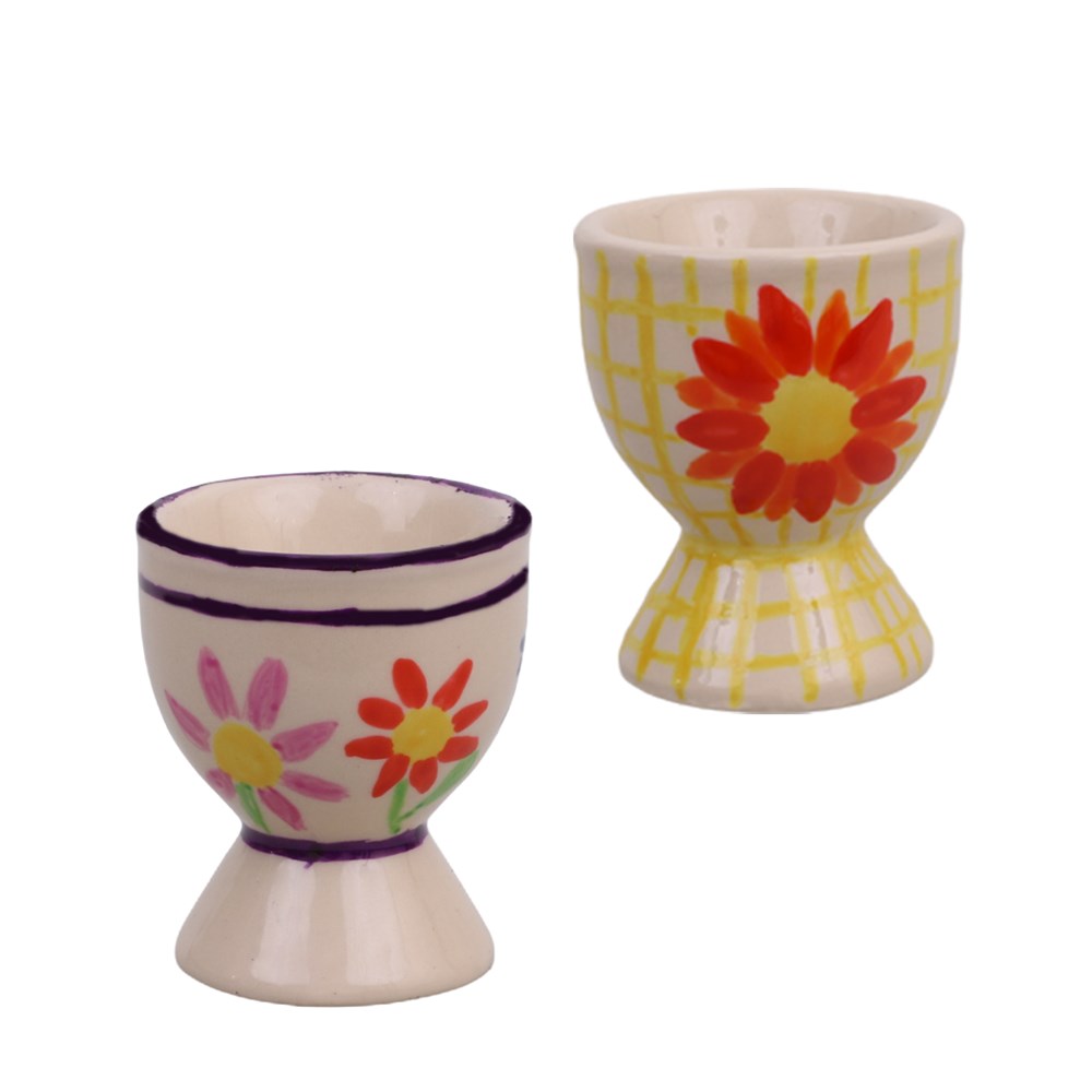 Each egg cup measures 5 x 6cm. Size, colour and design may vary.
