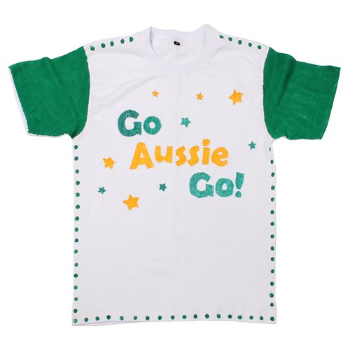 Plain for you to create. Children's size 12. Measures 46cm across chest and 55.3cm in length from shoulder to hem. 100% cotton. Decorate with CleverPatch Fabric Markers or Fabric Paint.