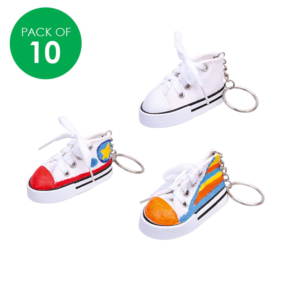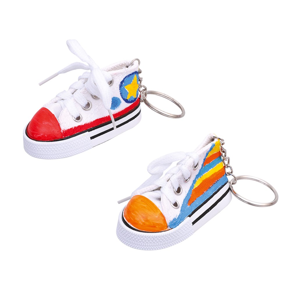 Customise these mini sneakers to create a cool bag tag or keyring!