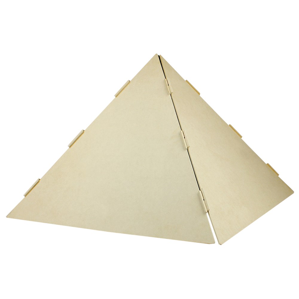 Giant wooden 3D pyramid comes plain for you to create. Australian made. Supplied flat-packed for easy self-assembly. Measures 65 x 65 x 45cm. 3mm wood. WHILE STOCKS LAST!