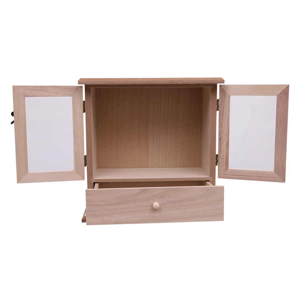 This wooden cabinet is ideal for creating miniature doll house furniture, holding trinkets, or for gifting to someone special!