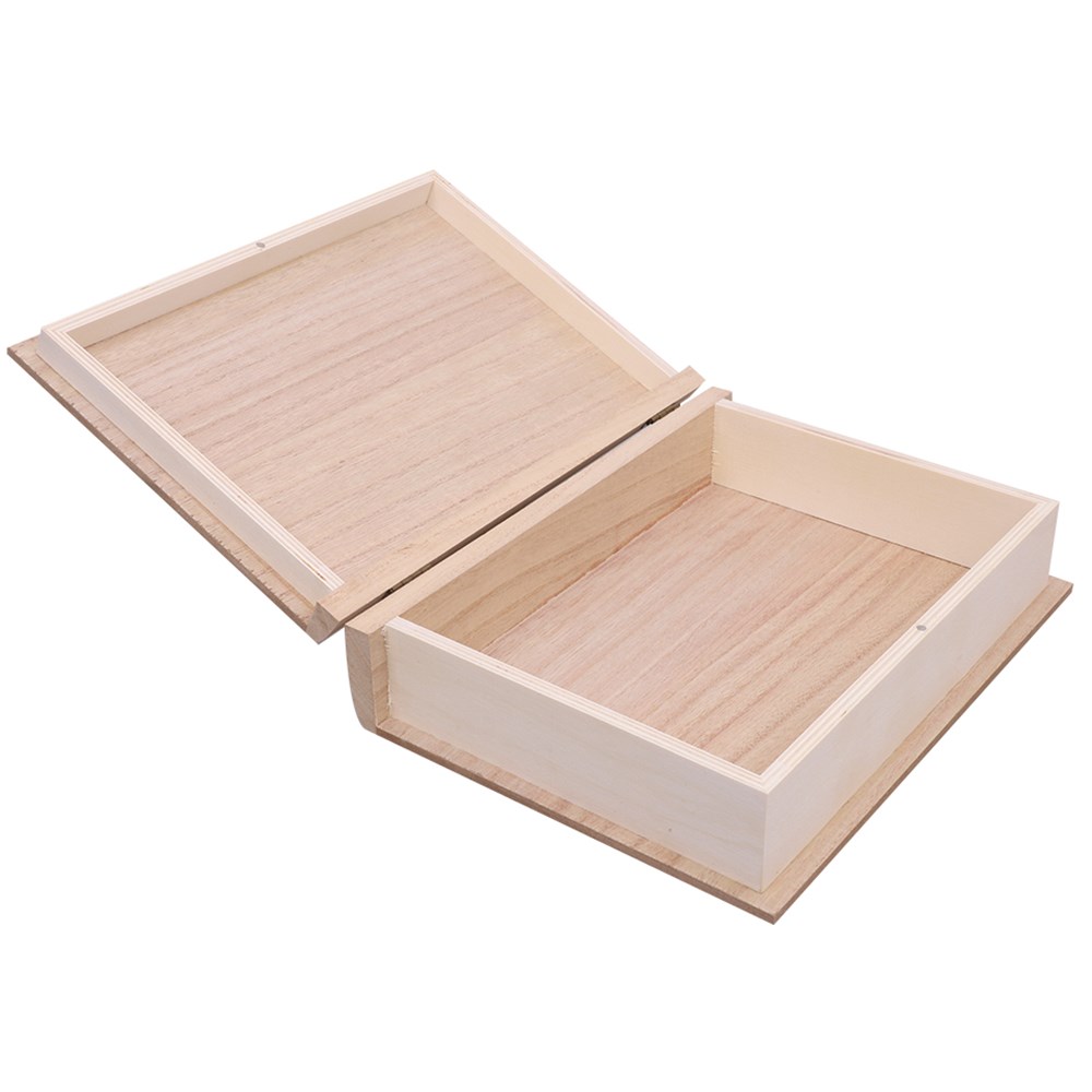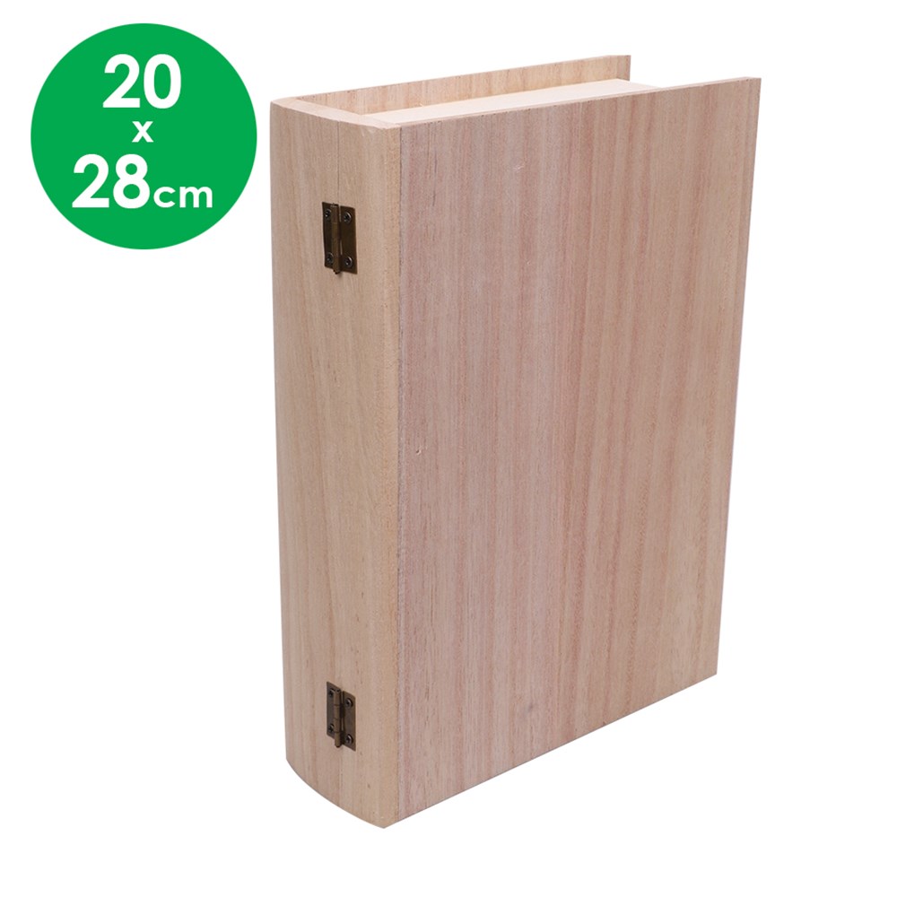 This storage box is perfect for any book lover! Plain for you to create. No assembly required. Measures 20 x 28 x 7cm. Interior of box measures 17 x 24.5 x 6cm. Includes 9mm wood cover and 5mm plywood pages.